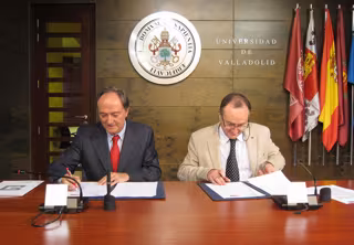 El Encuentro contará con el apoyo del Banco Santander, para lo que este martes han firmado un convenio de colaboración el rector de la Universidad de Valladolid (UVA), Daniel Miguel San José, (dado que la Institución es la sede permanente del Grupo) y el subdirector general adjunto de la entidad y director de Proyectos Corporativos de la División Global Santander Universidades, Juan Manuel Moreno Alegre.