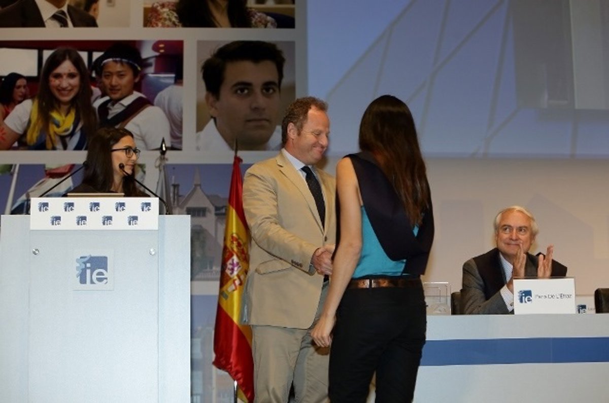 IE University y la consultora Saffron entregan el primer premio 'Wally Olins-Saffron' a la estudiante tailandesa-alemana Kim Palita, por su diseño de una aplicación --denominada 'Dibsy'-- que permite el envío de regalos virtuales.