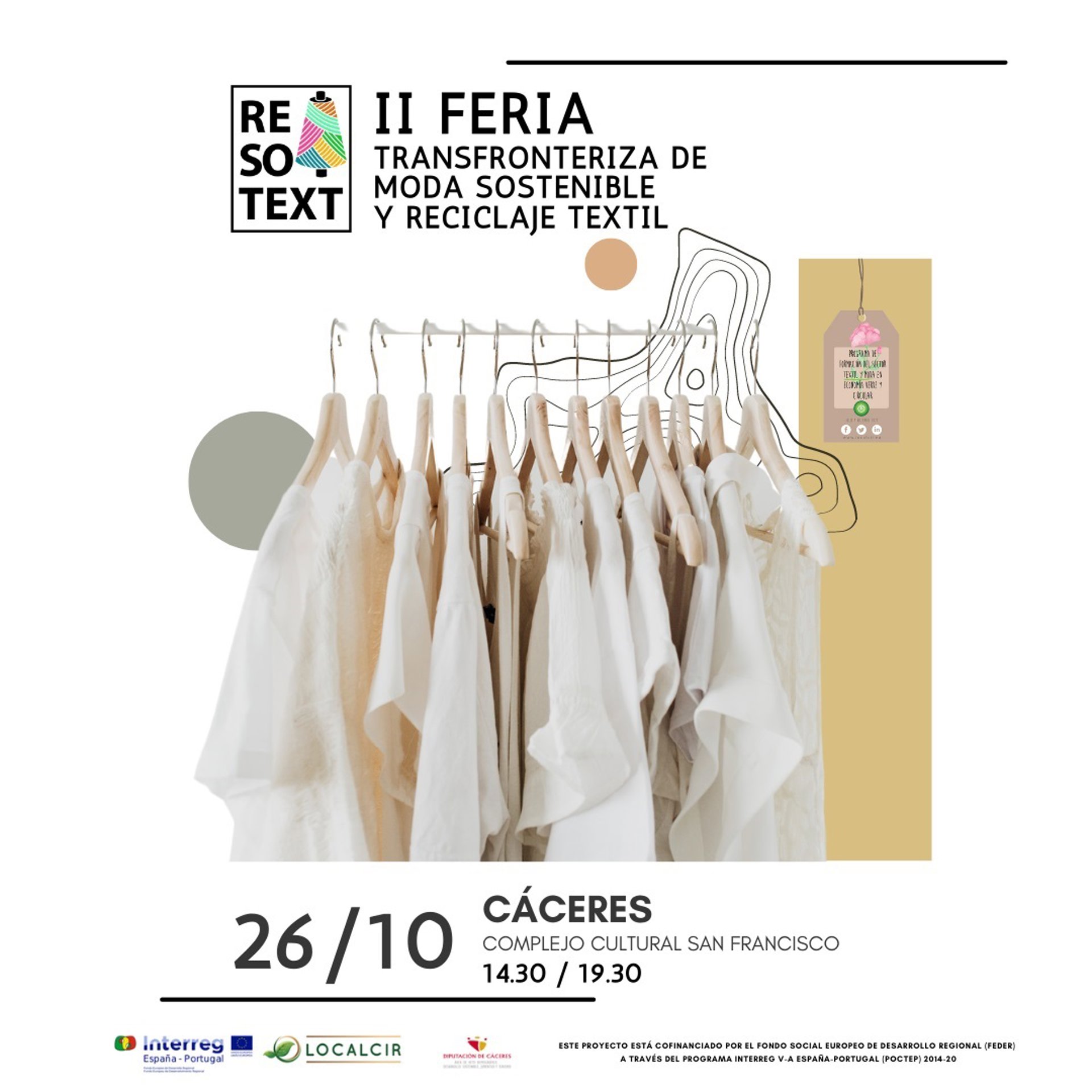 La feria tendrá lugar en el Complejo Cultural San Francisco de Cáceres, en horario de 14,30 a 19,30 horas, e incluye una jornada de comunicación de resultados y cierre del proyecto 'Localcir' dirigida a profesionales del sector textil y moda sostenible participantes en la Feria y representantes y personal técnico de ayuntamientos y de otras administraciones.