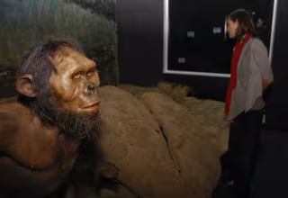 Una escenografía "realista" muestra a un grupo de Australopithecus afarensis, a los que su estructura social, su desconocimiento del fuego y su falta de capacidad para el habla les hace vulnerables, al lado de una familia de Neandertales, que reunidos en una conversación en torno del fuego dejan patente su cohesión social y su seguridad. Además, los visitantes podrán hablar, a través de un simulador, como seguramente lo hacían los Neandertales, con una distorsión de las vocales a, i y u.