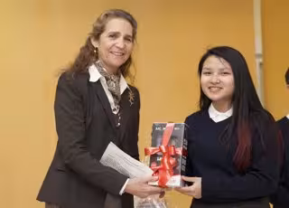 La Infanta Doña Elena ha entregado además al centro un lote de material educativo y un notebook a la tutora de la alumna en reconocimiento al apoyo del profesor en este proyecto. Durante el acto, ha subrayado "la importancia de la educación como herramienta esencial para el desarrollo de la sociedad" y ha hecho hincapié en la "necesidad de dar voz a los niños y jóvenes" en este tipo de iniciativas "con el fin de aportar su granito de arena en la construcción de un mundo mejor".
