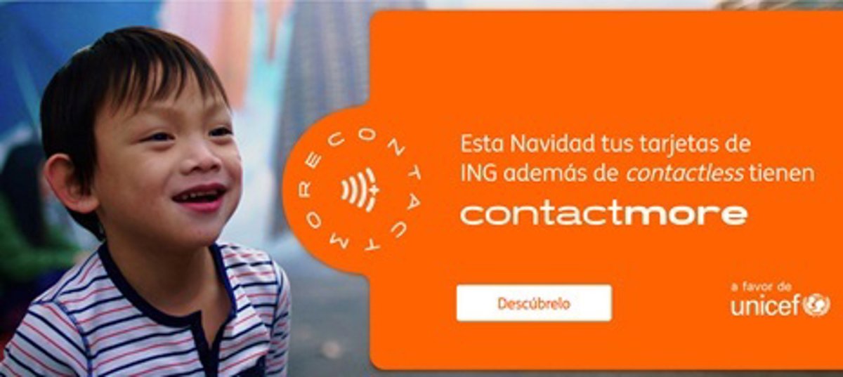 ING ha puesto en marcha la campaña navideña 'Contactmore' a favor de UNICEF, para animar a todos sus clientes a colaborar con esta ONG, con la que la entidad colabora desde hace 14 años, según informa en un comunicado.