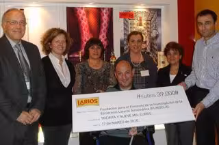Larios Dry Gin ha entregado un cheque de 39.000 euros a la Fundación para el Fomento de la Investigación de la Esclerosis Lateral Amiotrófica (FUNDELA) con el objetivo de contribuir en la lucha contra esta enfermedad neuromuscular de causas desconocidas, que actualmente afecta a cerca de 4.000 personas en España.