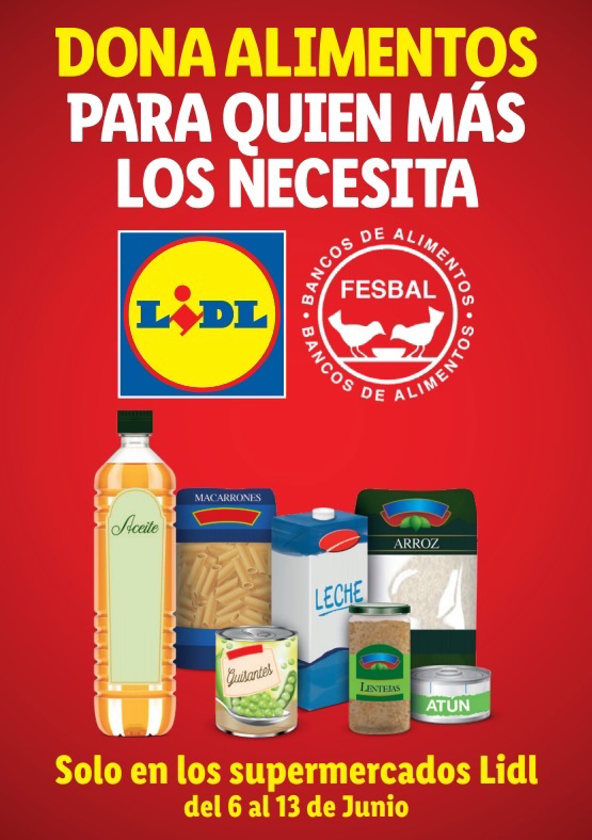 Lidl ha organizado una iniciativa que tiene como objetivo recaudar 100.000 kilos de alimentos para los bancos de alimentos (FESBAL) de toda España. La cadena se compromete a donar los primeros 50.000 kilos y busca la colaboración de los clientes para completar esta donación y lograr así el objetivo marcado.