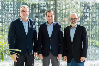 El presidente de Mango, Toni Ruiz; el director general del Comité español de Acnur, Francesco Sciacca, y el director de Alianza del Sector Privado de Acnur, Jorge Olague. - MANGO