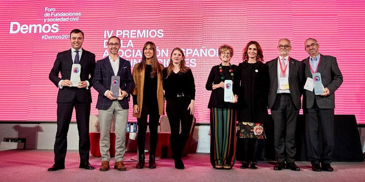 La Asociación Española de Fundaciones (AEF) ha premiado a María Entrecanales, Ana Varela y las Fundaciones Alimerka, Entreculturas y La Caixa por su labor social en el marco de Demos 2019: Foro de fundaciones y sociedad civil.