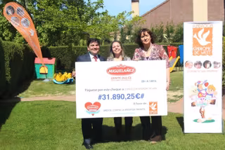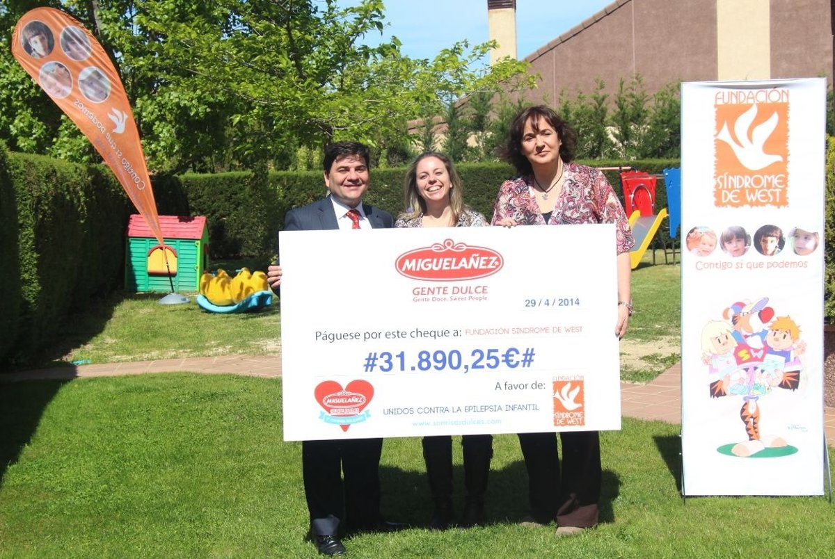 Migueláñez ha entregado el cheque de la IV edición de la Campaña 'Sonrisas Dulces' por valor de 31.890 euros a la Fundación Síndrome de West (FSW) para apoyar a más de 300 familias que tienen a su cargo alguna persona con esta enfermedad.