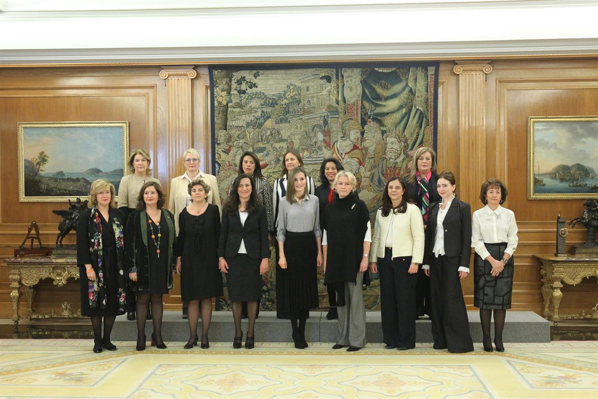 La Reina Doña Letizia ha recibido en audiencia, este miércoles 15 de febrero en el Palacio de la Zarzuela, a la junta directiva de Professional Women's Network Madrid (PWN), que le ha expuesto el desfase porcentual de puestos directivos ocupados por hombres y mujeres en España y las principales razones de la diferente evolución de las carreras profesionales entre géneros, según ha informado la organización.