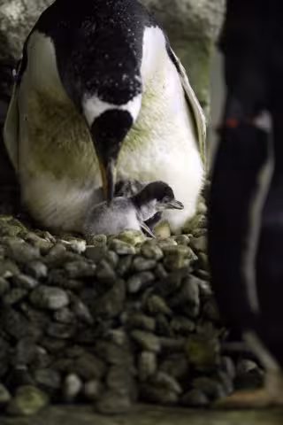 Los cuatro pingüinos papúa o pingüino Juanito (Pygoscelis papua) se unen a los a los 15 ejemplares de esta especie que se encuentran en la instalación de Antártico del Oceanogràfic. El período de incubación es de unos 36-41 días y las crías dependerán de sus padres entre, como mínimo, 70 y 75 días, un período en el que se alimentarán de los regurgitados de sus progenitores.