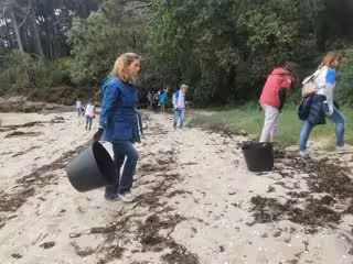 Esta limpieza se enmarca dentro de la campaña 'Plancton', promovida entre otros por la obra social de Abanca, y en ella han participado también jubilados socios del 'Espazo +60' de Ourense, miembros de las organizaciones Bata y Con Eles, que prestan atención a personas con diversidad funcional, y la Asociación de Mariscadoras de Carril (AmarCarril).