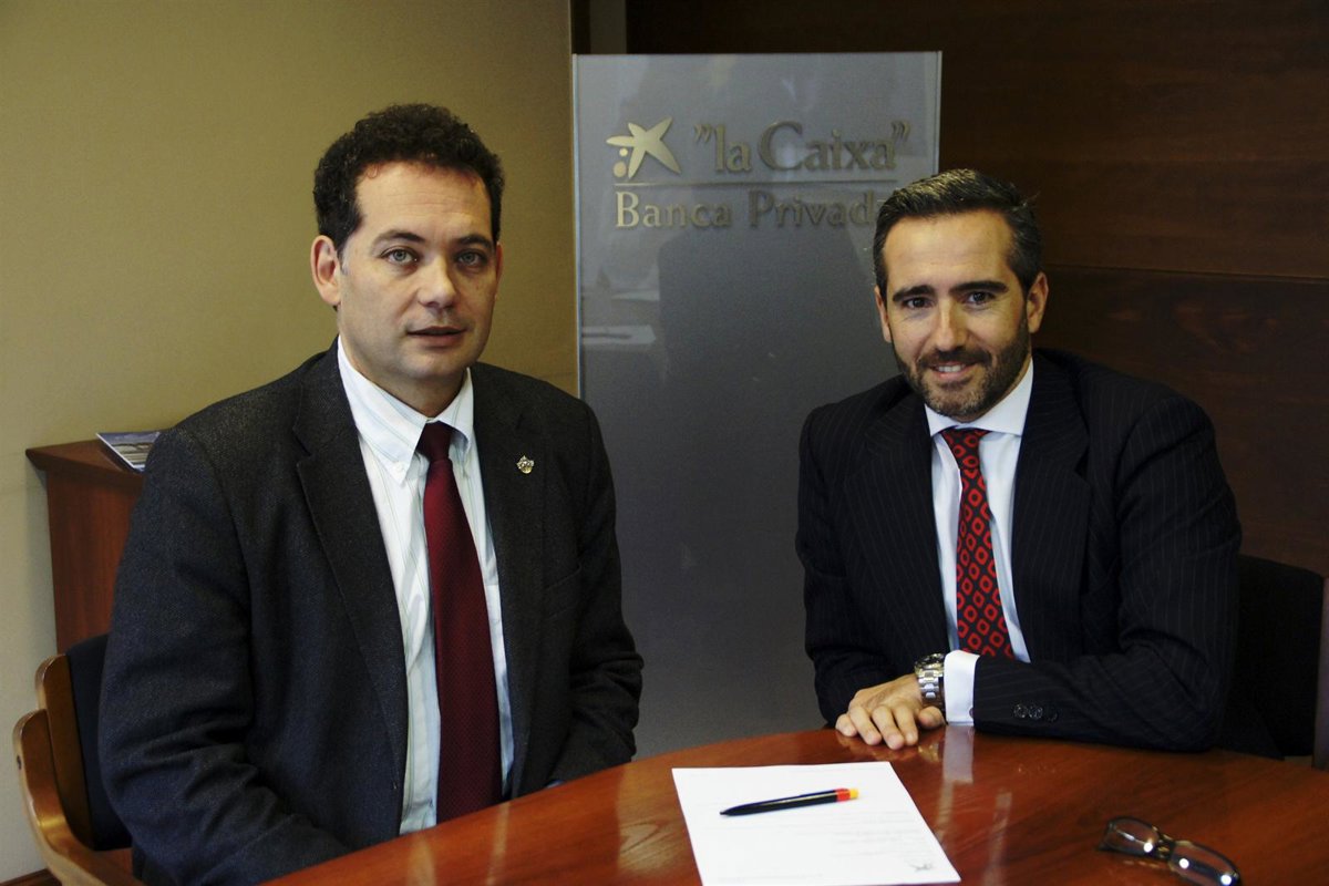 El director de Banca Privada de 'la Caixa' en Asturias, Juan Ignacio Orueta, y el presidente de la Fundación Vinjoy, Adolfo Rivas, han suscrito este jueves un acuerdo de colaboración, en virtud del cual, la entidad financiera apoyará económicamente a la Fundación Vinjoy, para la puesta en marcha de un proyecto de formación como monitores artísticos de personas con discapacidad intelectual. Estos monitores impartirán formación artística en la Universidad de Oviedo, Centros Sociales e Institutos de Secundaria.