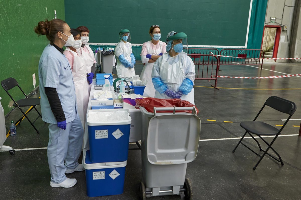 Trabajadoras sanitarias esperan la llegada de personas en un dispositivo de extracción de pruebas PCR. - Ion Alcoba - Europa Press - Archivo