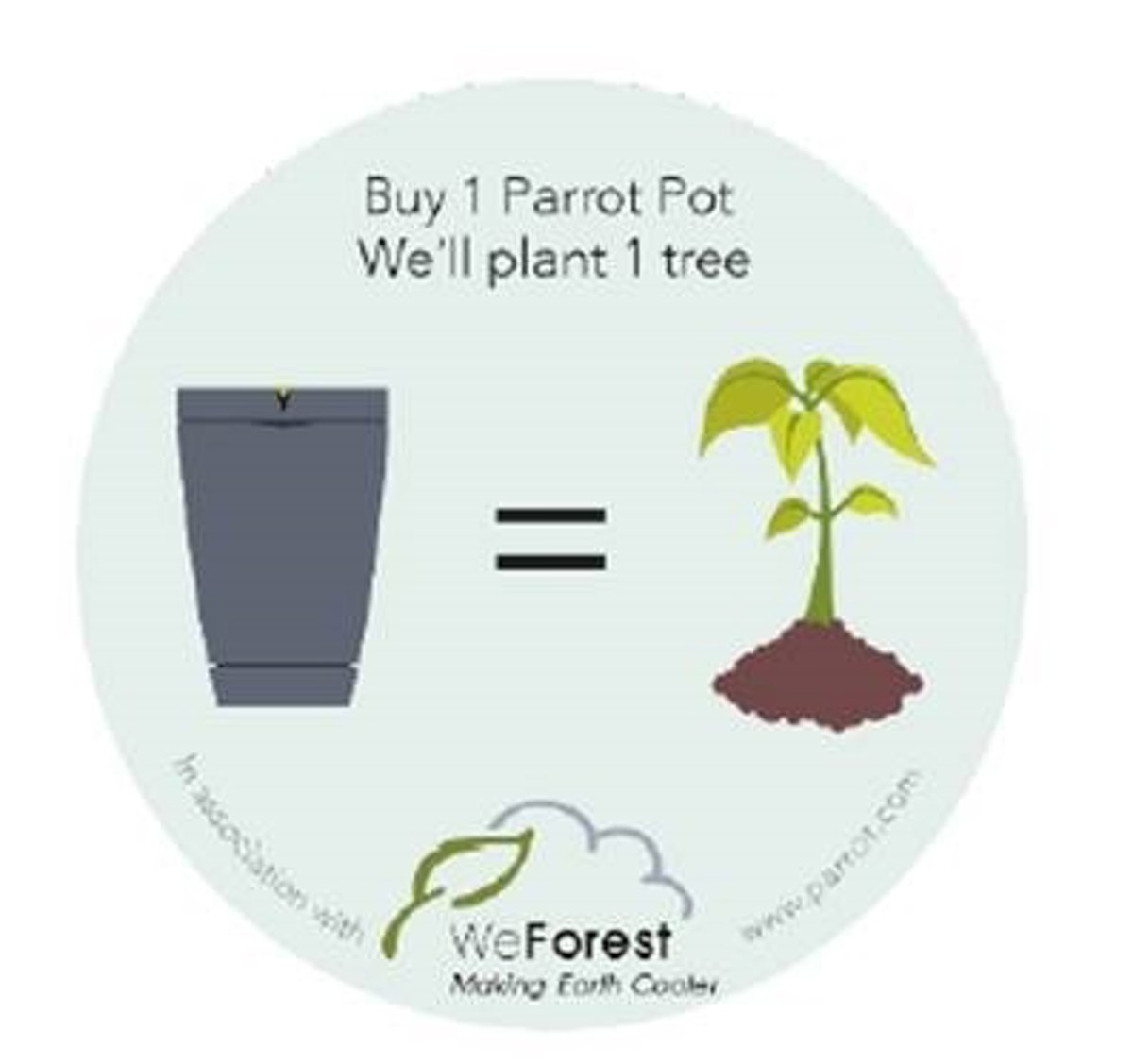Parrot ha puesto en marcha la iniciativa '1 Parrot Pot = 1 árbol', según la cual, por cada maceta Parrot Pot que se compre en cualquier lugar del mundo, WeForest plantará un árbol, según informa la compañía.