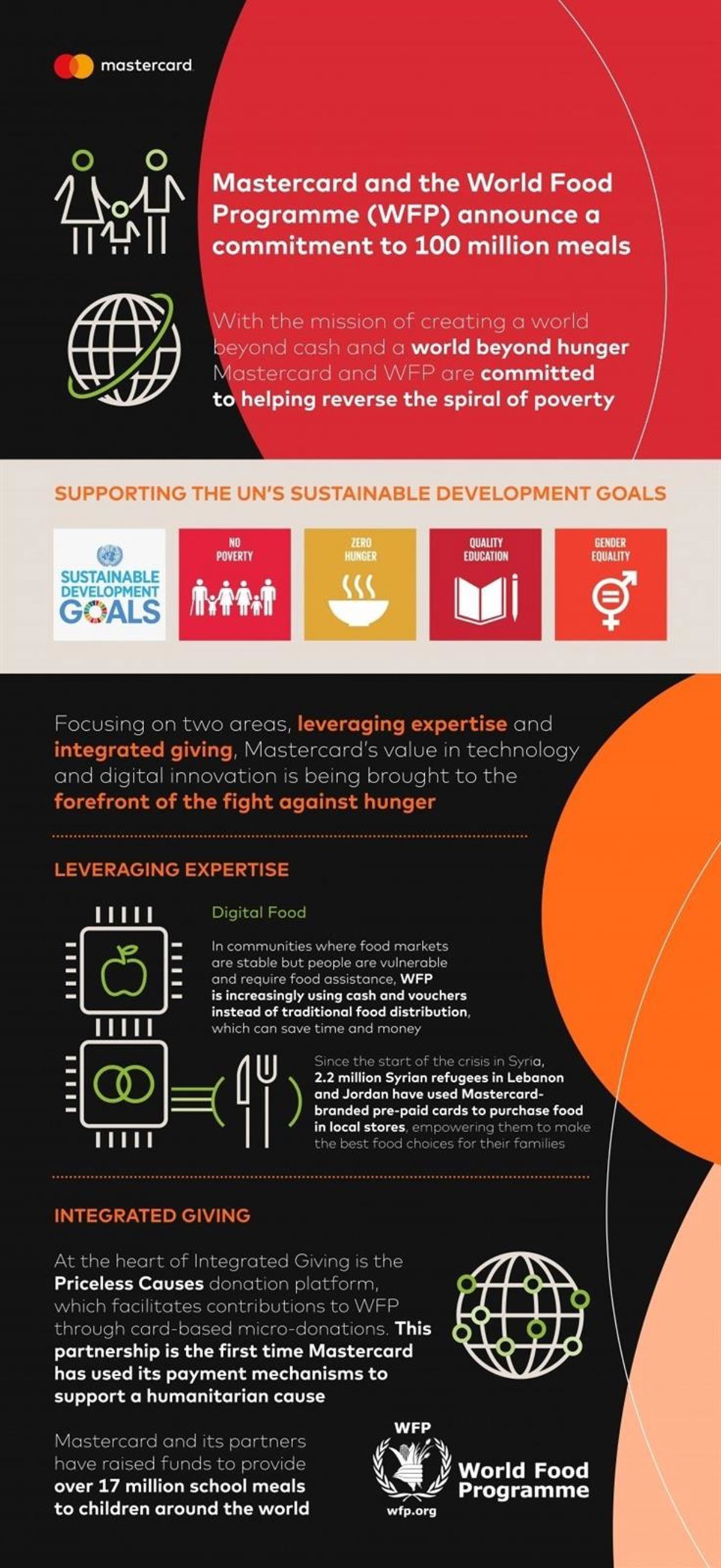 Por ello, Mastercard ha lanzado una iniciativa para donar 100 millones de comidas a los más necesitados en todo el mundo con el objetivo, según la presidenta internacional de Mastercard, Ann Cairns, de "aprovechar la tecnología y otros recursos para mejorar la vida de los más desfavorecidos y acabar con el ciclo de la pobreza".