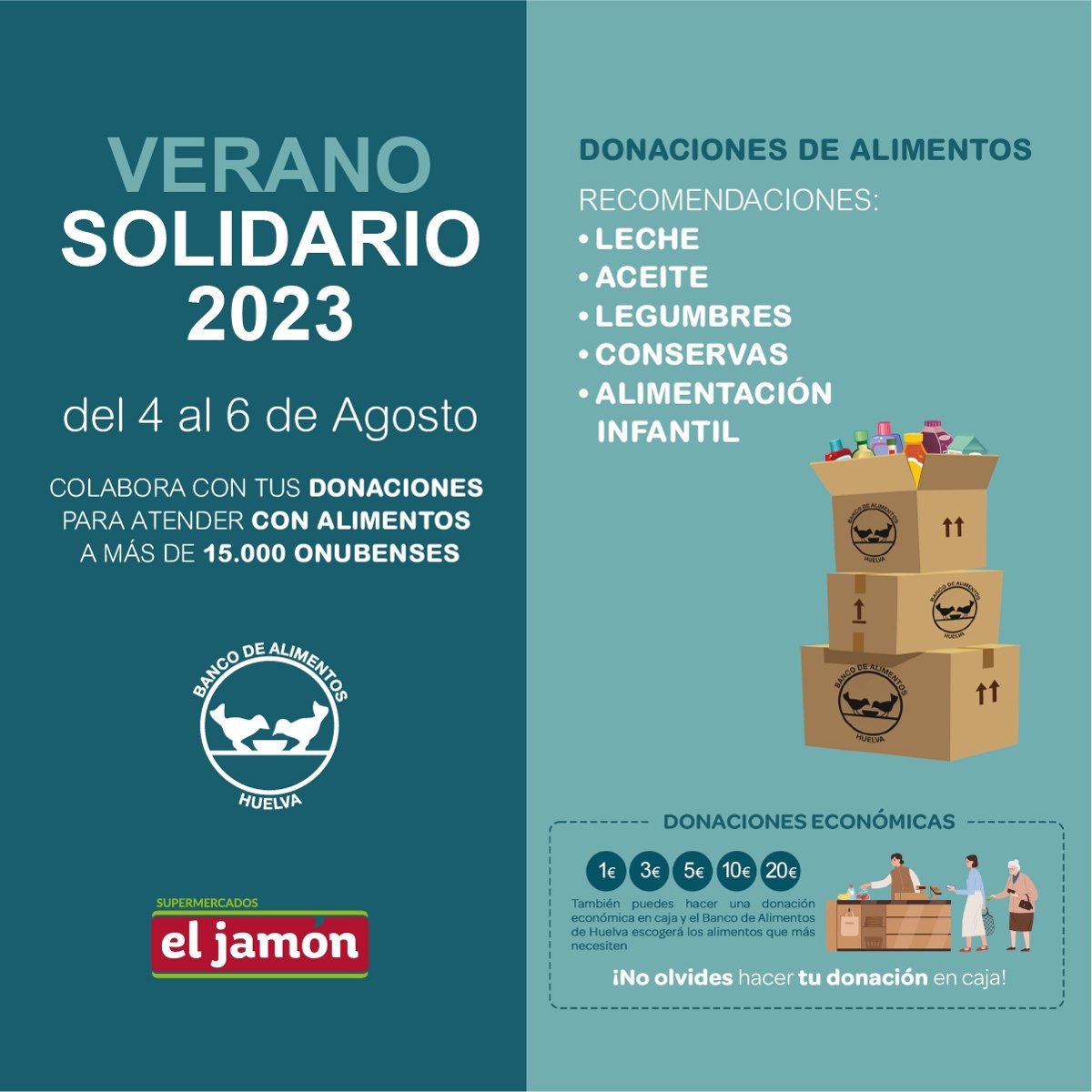 Un total de 23 establecimientos de la cadena Supermercados El Jamón participarán desde el 4 al 6 de agosto en una nueva recogida, tanto de alimentos como de donaciones económicas, a beneficio del Banco de Alimentos de Huelva (BAH).