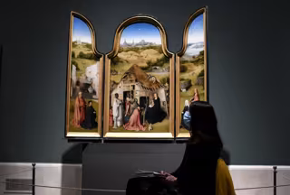 Una persona posa por delante de la obra 'Adoración de los Magos' del Bosco el día de la reapertura de la sala donde permanecen las obras del artista. - Óscar Cañas - Europa Press