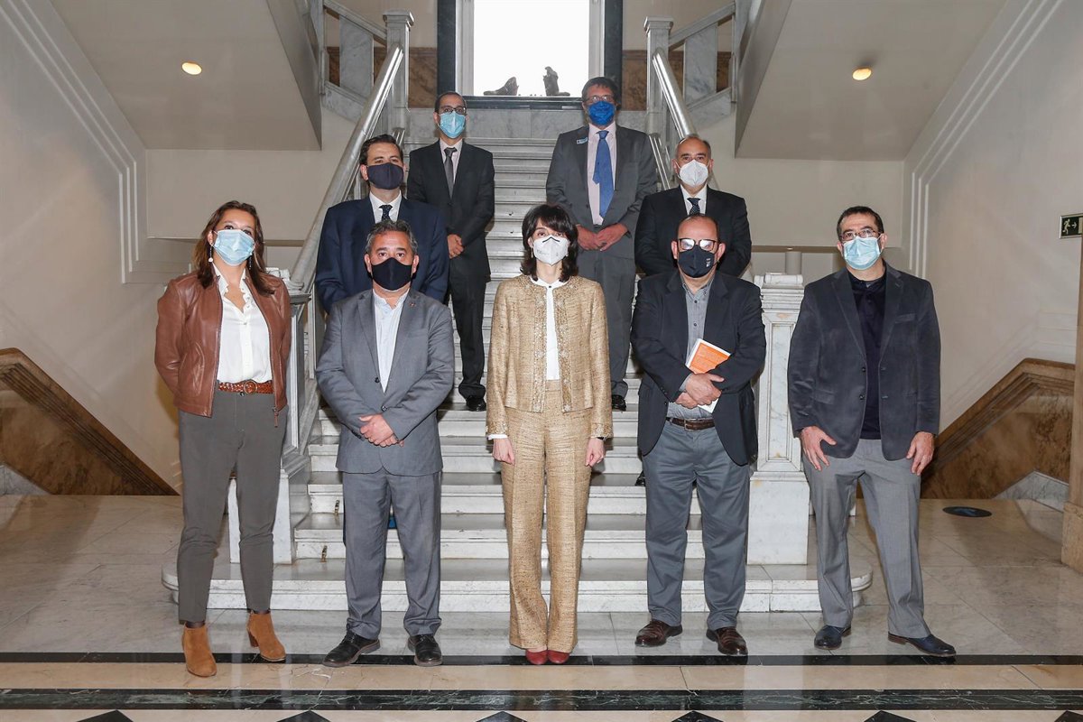Pilar Llop, presidenta del Senado, con algunos de los participantes en la presentación del libro, entre ellos Víctor Meseguer - UCAM