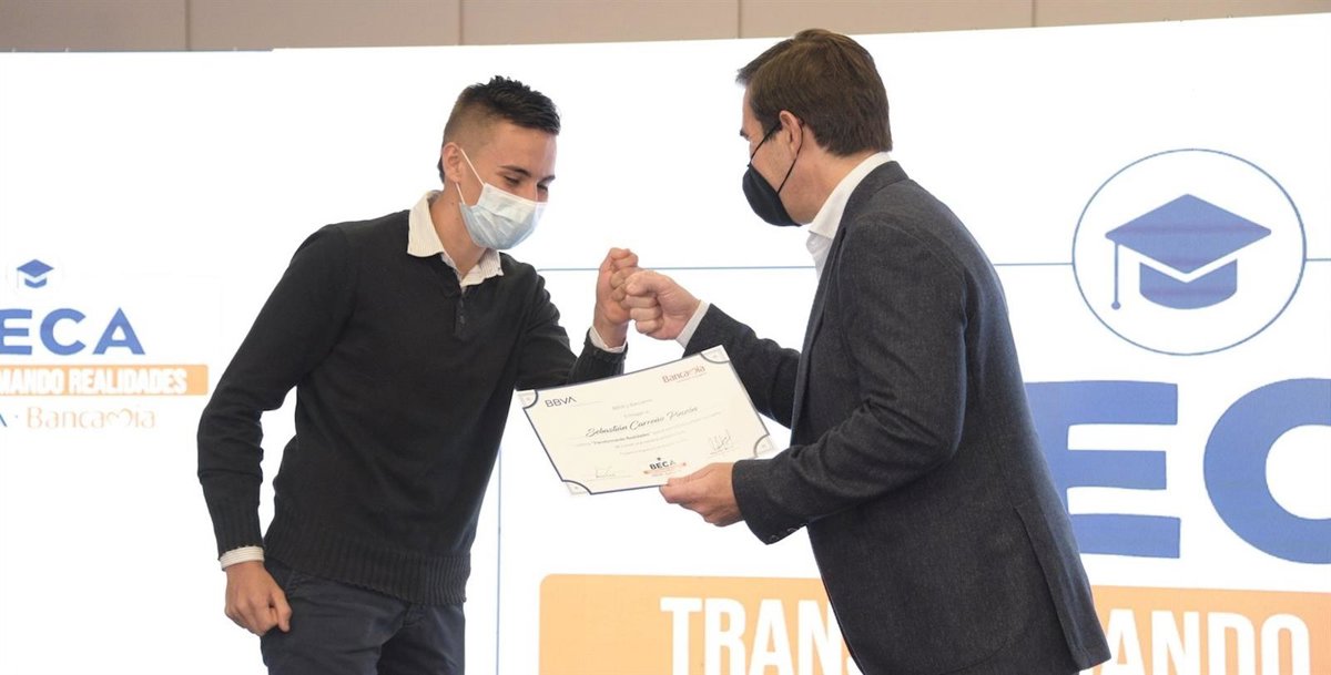 El presidente de BBVA entrega la Beca Transformando Realidades al ganador de esta edición, Sebastián Carreño Pinzón - BBVA