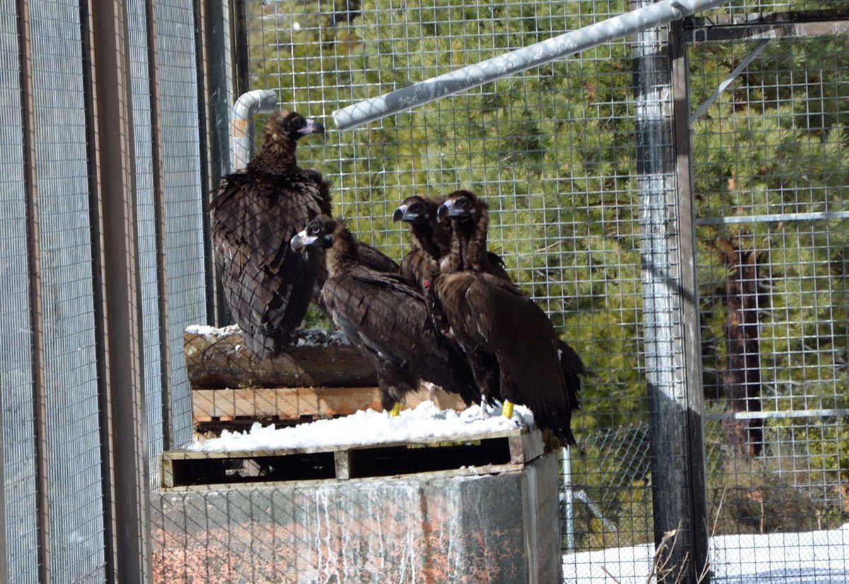 Los animales serán alimentados "con las mínimas molestias" y se familiarizarán con el entorno y con otros buitres negros de la zona que acuden a alimentarse en comederos próximos a las jaulas.