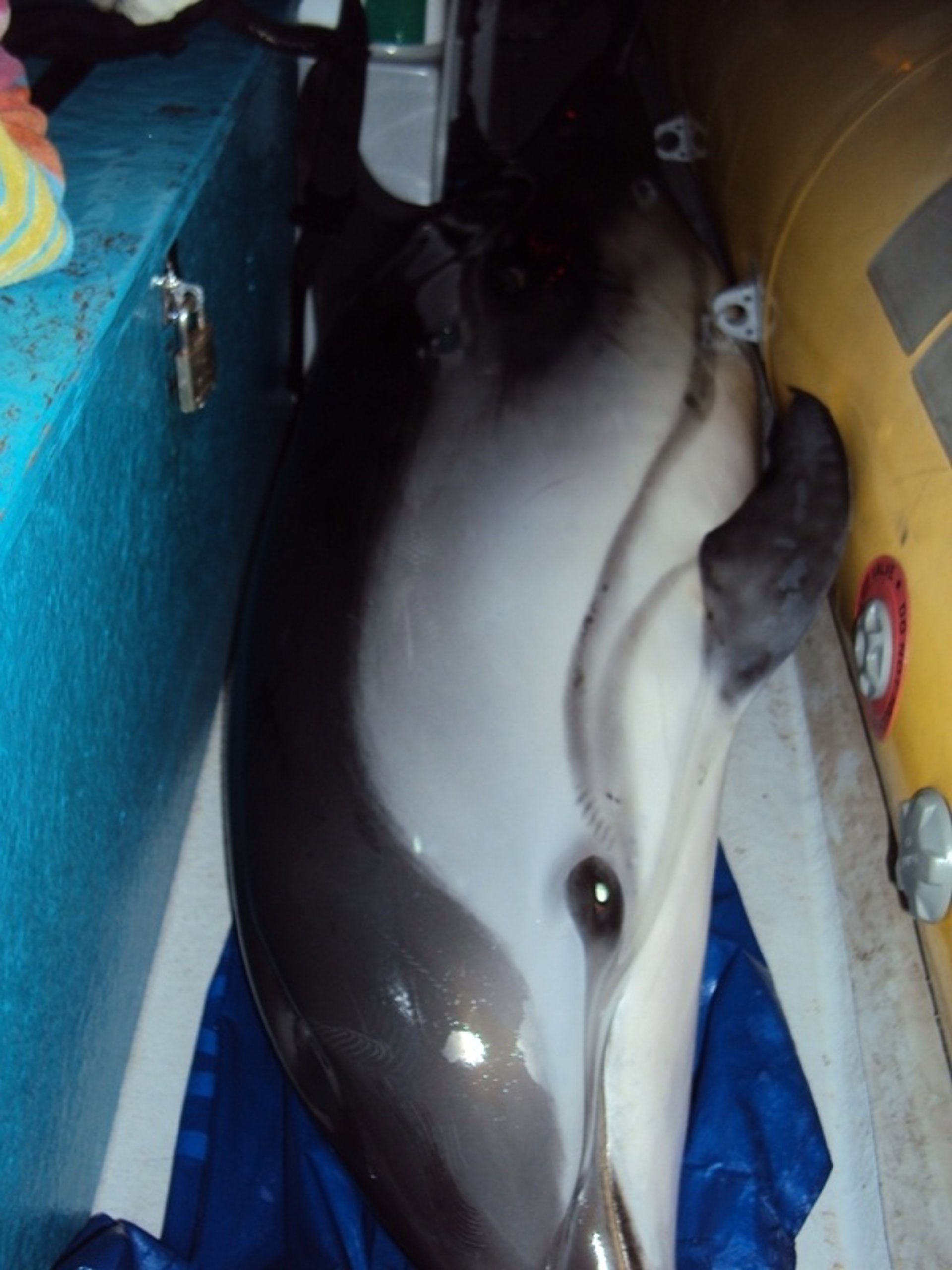 Posteriormente, una vez posicionada la embarcación a aproximadamente a media milla del muelle comercial de Puerto del Rosario se introdujo al delfín en el agua, y el domingo, 7 de abril, a primera hora de la mañana, el servicio de vigilancia ambiental realizó el rastreo de la costa este de Puerto del Rosario desde el muelle comercial hasta la población del matorral pero no observaron ni por la orilla, ni varado el ejemplar de delfín.
