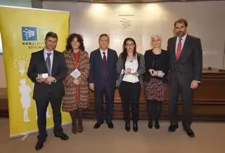 El presidente de Red Eléctrica de España, José Folgado, el consejero delegado, Juan Lasala, y la directora corporativa de Sostenibilidad, Innovación y Coordinación Institucional, Ana Cuevas, han entregado este 3 de marzo las distinciones a los proyectos de eficiencia energética de 2015 en la IV Edición de los Reconocimientos Red Eléctrica eficiente, una campaña anual lanzada para impulsar todas las iniciativas de las distintas áreas de la empresa orientadas a reducir los consumos de recursos naturales y las emisiones de CO2.