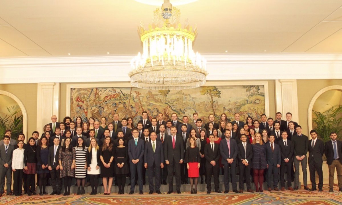 Su Majestad el Rey ha recibido este martes, 12 de diciembre, en el Palacio de la Zarzuela a algunos de los estudiantes y jóvenes investigadores que disfrutan de las cerca de 150 becas otorgadas por Iberdrola para el curso 2017-2018, según informa la compañía.