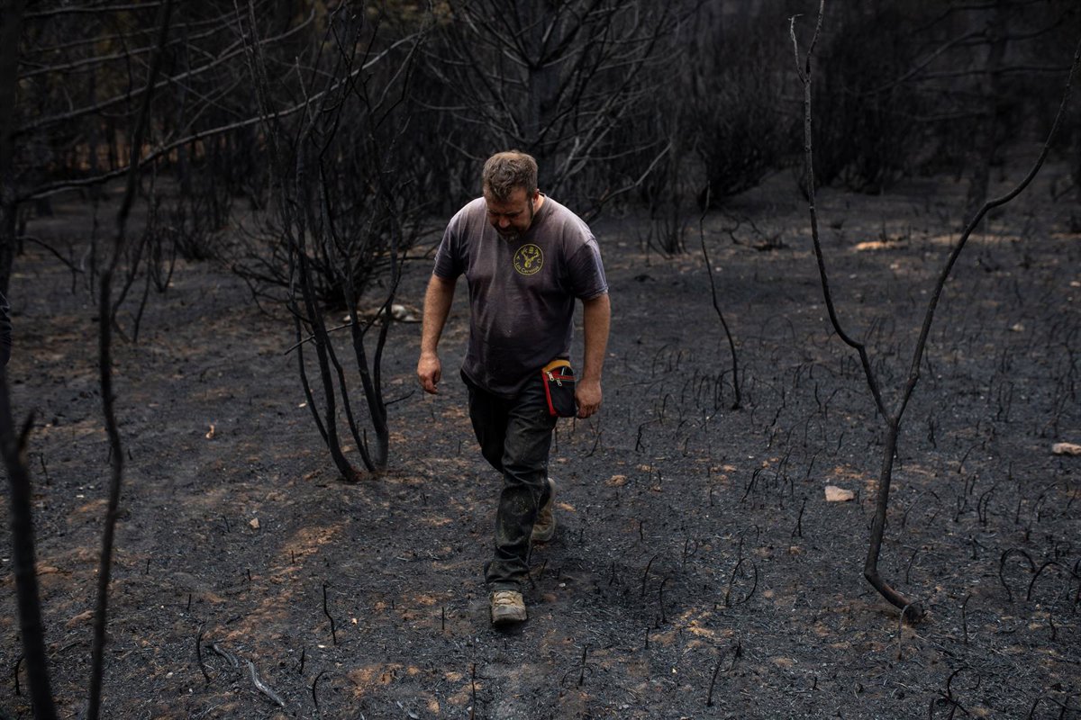Una persona camina en el estado en el que se ha quedado la zona tras el incendio sofocado hace dos días e iniciado el pasado día 15 en la Sierra de la Culebra, a 21 de junio de 2022, en Villardeciervos, Zamora, Castilla y León (España). La Junta de Cast - Emilio Fraile - Europa Press