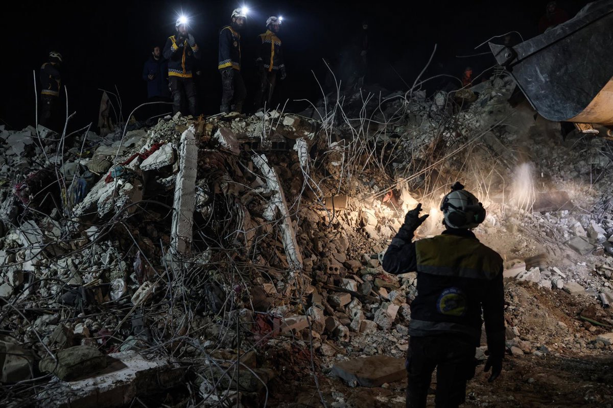 Un grupo de 'cascos blancos' durante las tareas de búsqueda y rescate en el noroeste de Siria a raíz de los terremotos en Turquía - Anas Alkharboutli/dpa