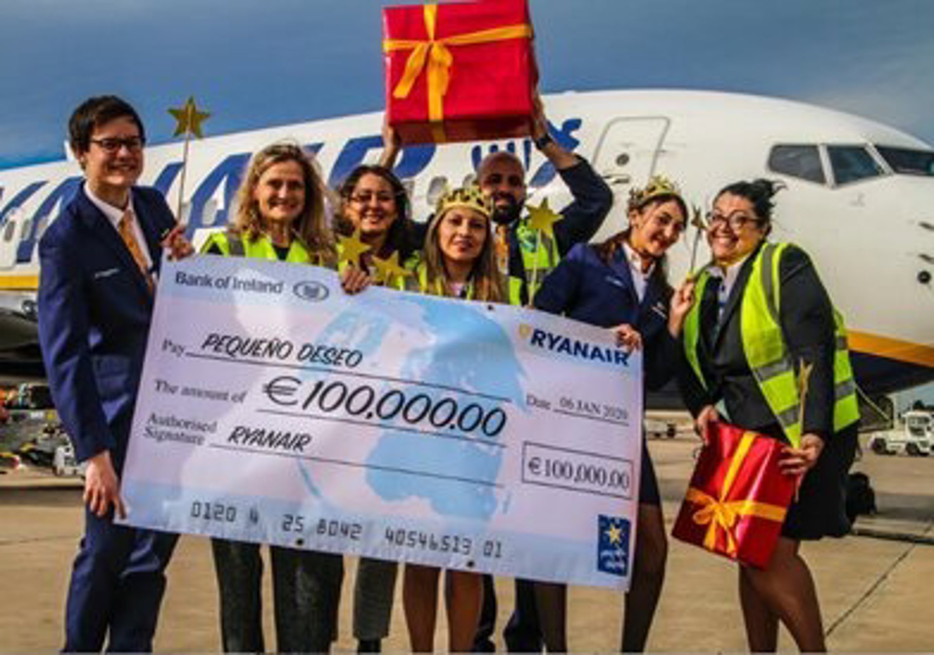 Ryanair ha donado 100.000 euros a la Fundación Pequeño Deseo, cuyo objetivo es hacer que se cumplan los deseos de niños enfermos, tras concluir el 2019, un año en el que han realizado diferentes actividades destinadas a la captación de fondos, según informa la aerolínea.