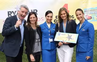 El acto de entrega del donativo ha contado con la presencia de Michael O'Leary, de Ryanair, junto con varios miembros de la tripulación de cabina y la directora de la Fundación Pequeño Deseo, Cristina Cuadrado.