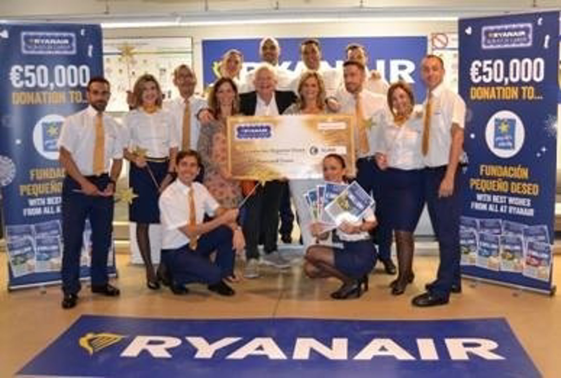 Ryanair ha realizado esta semana en Madrid una donación de 50.000 euros a la Fundación Pequeño Deseo, a la que apoya a través de sus tarjetas 'Rasca y Gana' y con la que colabora desde el año 2013, para hacer realidad los deseos de niños y niñas con enfermedades crónicas o de mal pronóstico, según ha informado la aerolínea.