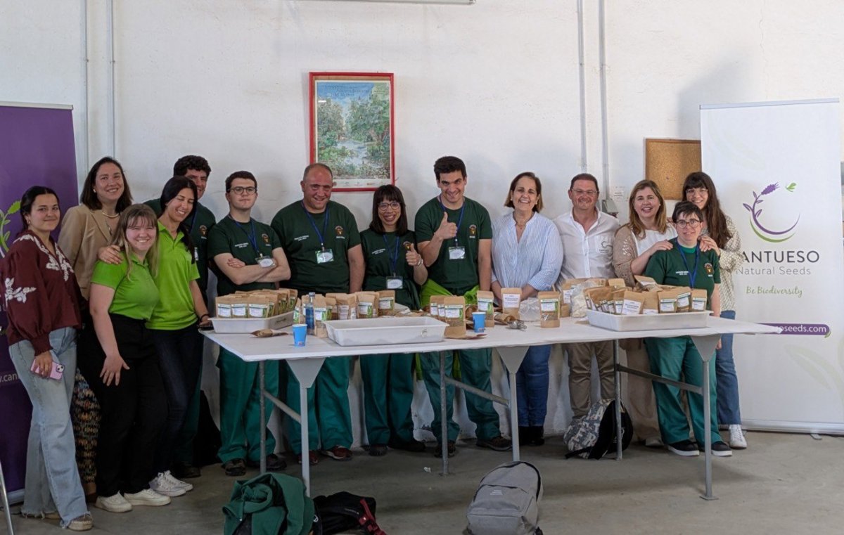 Seis personas con discapacidad intelectual, usuarias de la Asociación Cordobesa para la Integración de Niñas y Niños Border-Line (Acopinb), realizan prácticas remuneradas en la empresa de semillas ecológicas Cantueso Natural Seeds, ubicada en la barriada periférica de Villarrubia en Córdoba, gracias a la financiación del Instituto Municipal de Desarrollo Económico y Empleo de Córdoba (Imdeec).