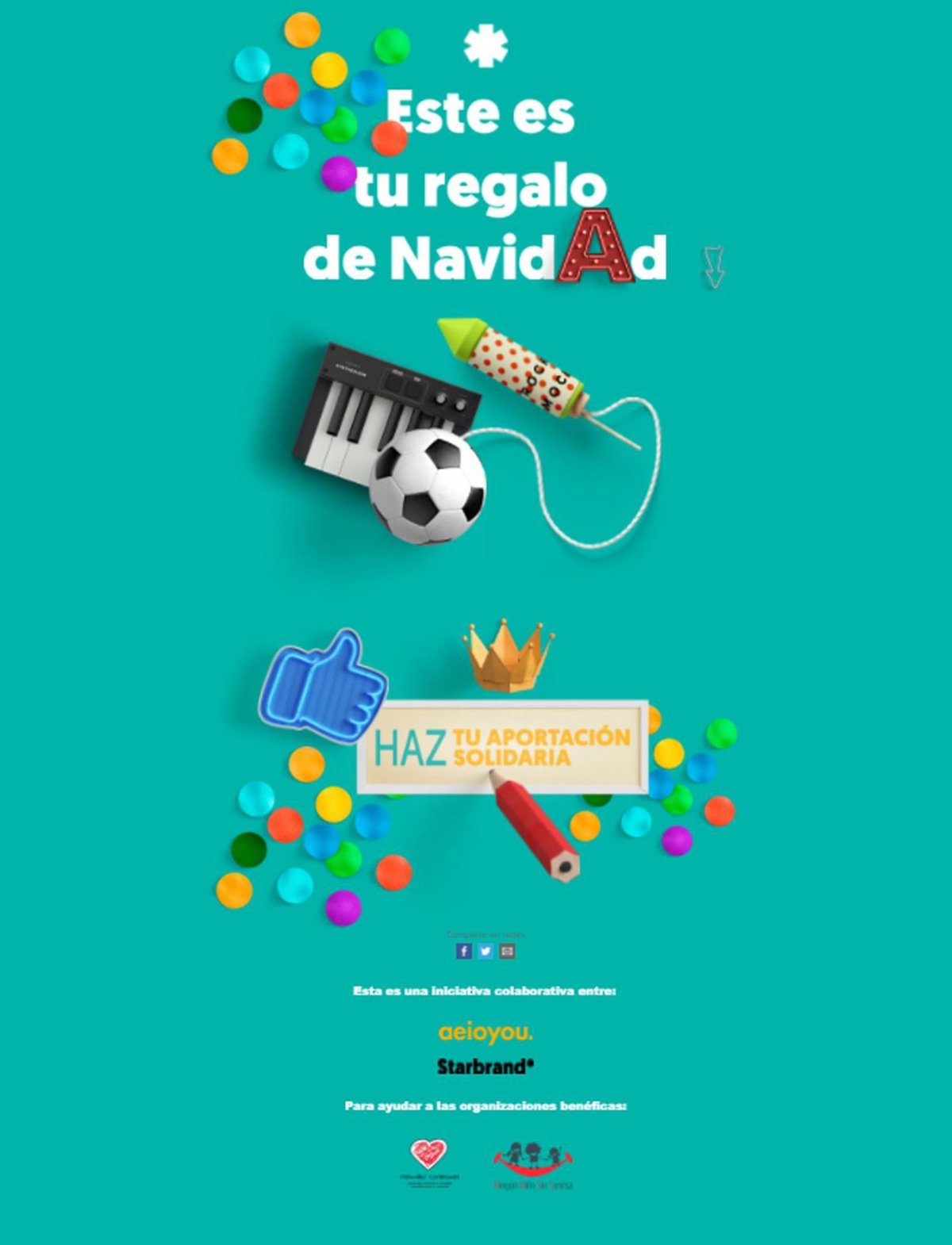Para realizar la aportación solidaria se ha diseñado la página web http://juguetesparatodos.aeioyou.es/. Además, se utilizarán los perfiles en redes sociales de la propia página de aeioyou para esta campaña, que ha sido obra de la agencia de marketing 'The Starbrand'.