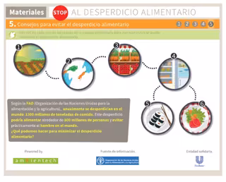 "STOP al desperdicio alimentario" es un itinerario educativo sobre el desperdicio alimentario, que ya está disponible en el área de salud del portal ambientech.org. El objetivo de esta plataforma es que los y las jóvenes conozcan todas las etapas de la cadena alimentaria, cómo influye cada una de ellas en el desperdicio alimentario y cuáles son las acciones que podemos hacer para minimizar al máximo la pérdida de alimentos.
