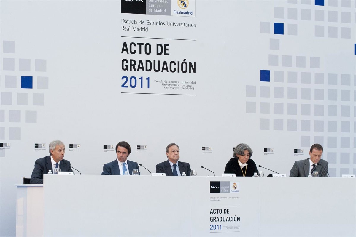 El acto también ha contado con la presencia del presidente del Real Madrid, Florentino Pérez; de la Rectora de la UEM, Agueda Benito; del director general de la escuela, Emilio Butragueño; y del presidente de la UEM y de 'Laureate International Universities' para la Región Mediterránea, Miguel Carmelo.