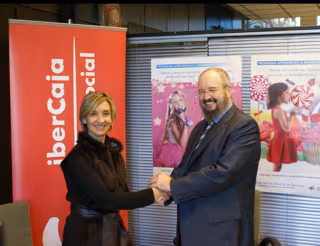 El acuerdo ha sido rubricado este viernes en la Oficina Principal de Ibercaja por la directora de la Obra Social de Ibercaja, Teresa Fernández, y el presidente de Fundación DFA, José Miguel Monserrate.