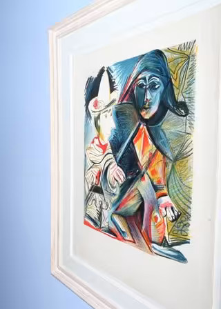 La exposición reúne ocho grabados y tres cerámicas entre litografías, linograbado, aguafuertes y aguatinta cuya temática, paralela a la utilizada en otros medios y soportes, aproximan al usuario al Picasso surrealista, neoclásico o postcubista.
