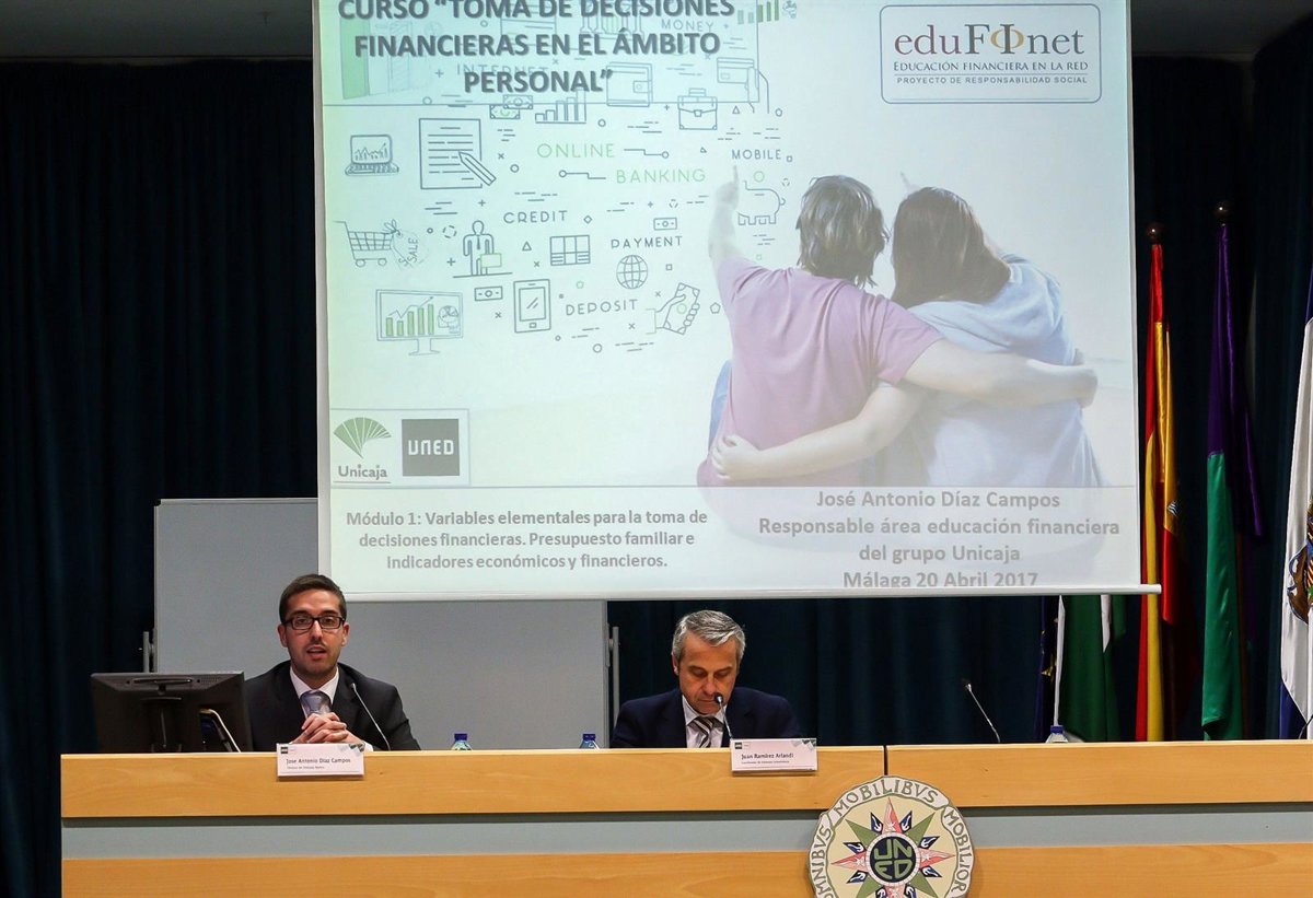 Los cursos 'Toma de decisiones financieras en el ámbito personal', en los que han participado alumnos de la Universidad Nacional de Educación a Distancia (UNED), de la Universidad de Málaga (UMA) y de la Universidad de Almería (UAL), así como público en general, se han realizado en el marco de los convenios que el Proyecto Edufinet mantiene con estas instituciones académicas para mejorar la formación de los ciudadanos en materia de finanzas.