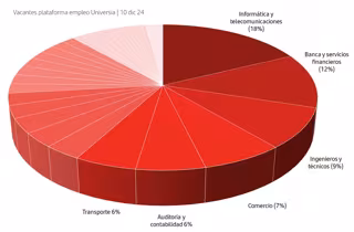 De ellas, un 18% en el sector de informática y telecomunicaciones, seguidas por las ofertas en banca y servicios financieros (12%), las vacantes para ingenieros y técnicos (9%) y comercio (7%), según ha informado la entidad.