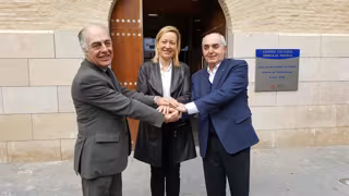 La consejera de Economía, Industria y Empleo y presidenta de Walqa, Marta Gastón, el director general de la Fundación Ibercaja, José Luis Rodrigo, y el presidente de la Cámara Oficial de Comercio, Industria y Turismo de Huesca, Manuel Rodríguez Chesa, ha firmado este pasado viernes en Huesca un convenio para implementar este programa.