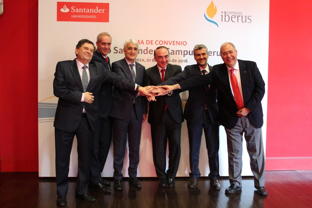 A la firma de este acuerdo han asistido además los rectores de las universidades de Lleida, Roberto Fernández; Zaragoza, Manuel López, y Pública de Navarra, Alfonso Carlosena, y el director territorial de Aragón-Navarra-La Rioja de Banco Santander, Luis Sentis, entre otros.