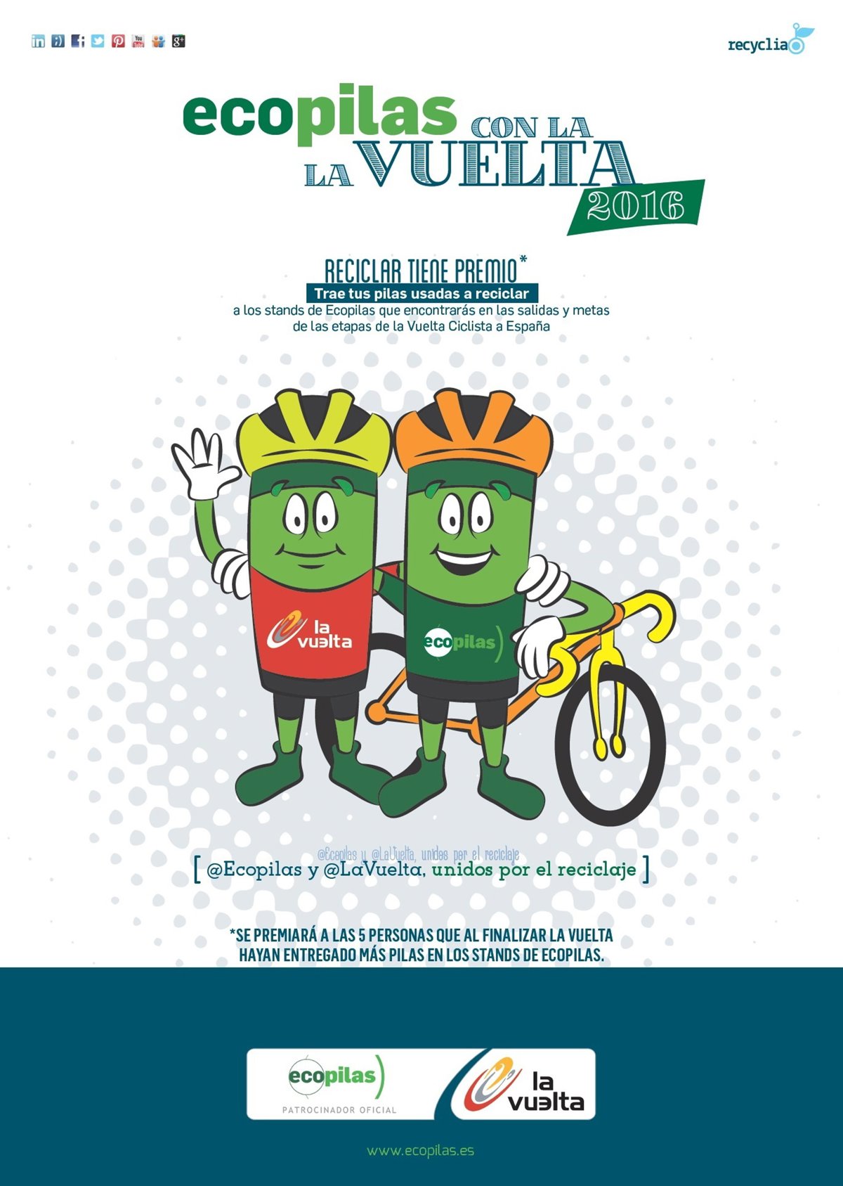 La Fundación medioambiental Ecopilas y la Vuelta Ciclista a España volverá á a fomentar la recogida selectiva y el reciclaje de pilas usadas entre los aficionados al ciclismo durante las 21 etapas que dura este evento deportivo, según informan ambas instituciones.
