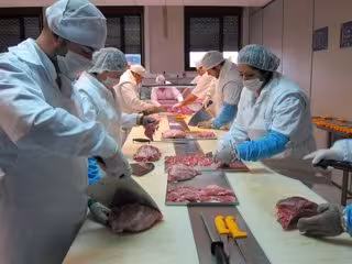 En este contexto, este viernes, día 22 de enero, representantes de instituciones involucradas en estos proyectos han visitado el curso teórico-práctico que se desarrolla en Mercazaragoza, y al que asisten 17 alumnos para obtener el certificado de carnicería.