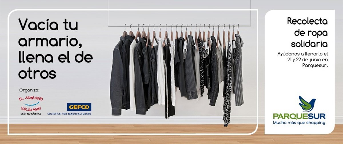 El Centro Comercial Parquesur ha puesto en marcha una iniciativa solidaria bajo el nombre el "Armario Solidario", consistente en la instalación de un punto de recogida de ropa y calzado en el centro, durante los días 20 y 21 de junio, de manera que los visitantes puedan realizar donaciones de ropa y calzado a favor de Cáritas.