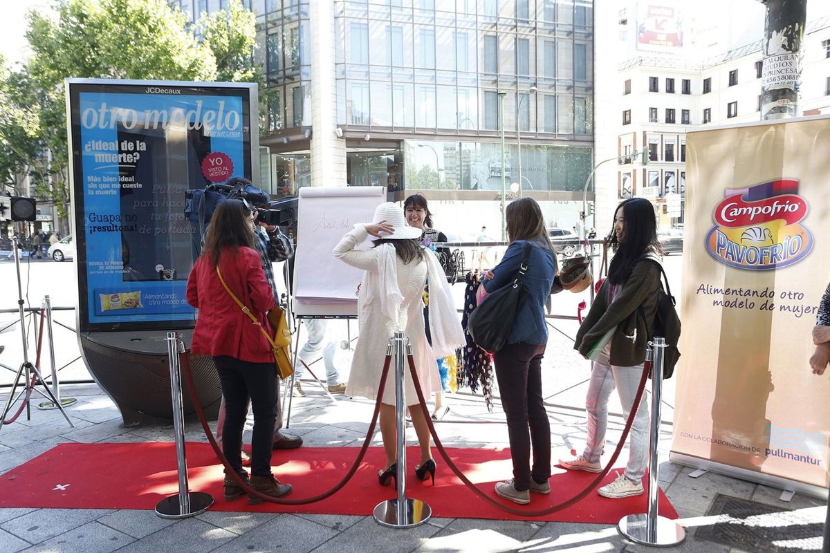 Decenas de mujeres han posado este miércoles frente a una valla publicitaria interactiva para convertirse en 'portada de revista' por unos segundos y, de esta forma, reivindicar "otro modelo de mujer, diferente al que la sociedad en general considera como perfecto", en una campaña organizada por Campofrío.