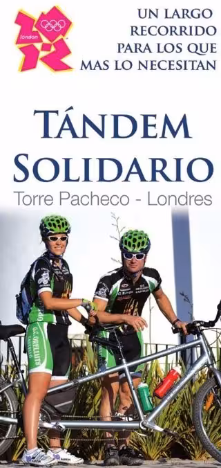 Pedro José Buendia, profesor de Primaria de 31 años de edad, y Loli Aguirre, profesora de educación física y de 29 años, partirán este viernes, 13 de julio, a las 10.00 horas desde la plaza del Nuevo Ayuntamiento de Torre-Pacheco rumbo a Londres en tandem.