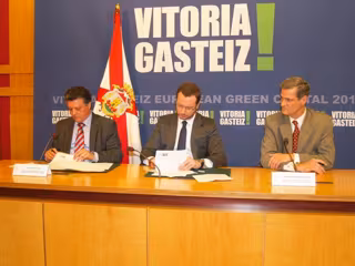 El convenio ha sido firmado por el alcalde de Vitoria, Javier Maroto, y el director general de la fábrica de Mercedes-Benz en Vitoria, Emilio Titos. Este acuerdo contempla una aportación económica, la plantación de un bosque y la cesión temporal de una furgoneta eléctrica.
