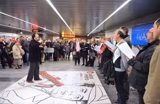 Tras una pequeña demostración, los miembros de la agrupación coral anfitriona se unieron a sus invitados ofreciendo un espectáculo musical que entusiasmó a la gran cantidad de público que se dio cita en la estación de Xàtiva de Metrovalencia.