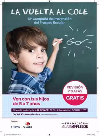 La Fundación Alain Afflelou ha lanzado la 'XII Edición de la Campaña de Prevención del Fracaso Escolar' para fomentar los chequeos de la visión del niño una vez al año para prevenir el fracaso escolar, con motivo de la 'vuelta al cole'.