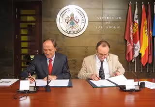 El Encuentro contará con el apoyo del Banco Santander, para lo que este martes han firmado un convenio de colaboración el rector de la Universidad de Valladolid (UVA), Daniel Miguel San José, (dado que la Institución es la sede permanente del Grupo) y el subdirector general adjunto de la entidad y director de Proyectos Corporativos de la División Global Santander Universidades, Juan Manuel Moreno Alegre.